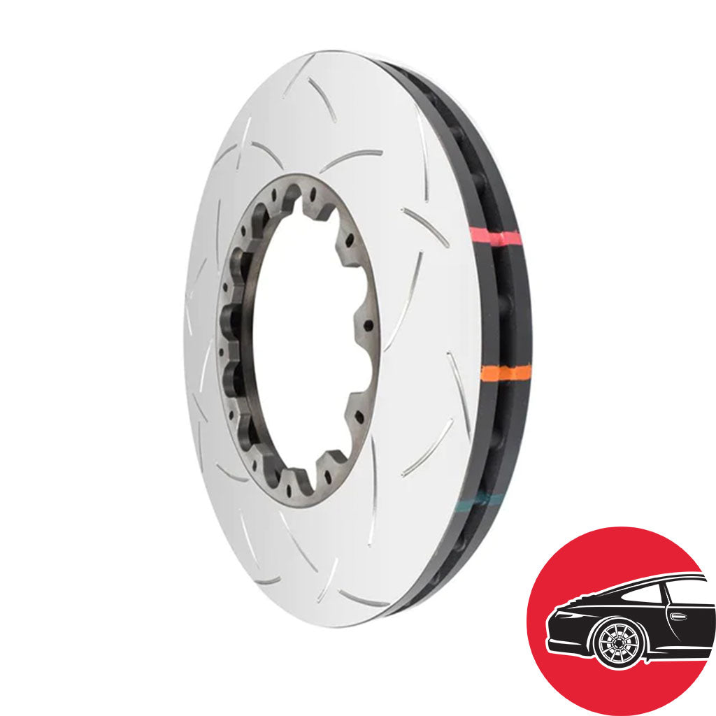 Thermo-Graphic markings are placed on the outer edge of each DBA 5000 series disc rotors and are used to monitor the core temperatures achieved during braking application. The markings change color as the rotor heats up to alert the driver to rotor temperatures that exceed optimum levels.